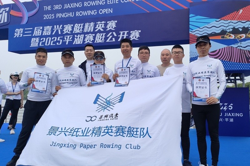 2025年05月18日,在2025年嘉興人才日主題活動——第三屆賽艇精英賽暨平湖賽艇公開賽上,景興紙業賽艇隊以黑馬之姿斬獲小組第一、總成績第七的佳績,成為賽事焦點。這支成立不足一年的年輕隊伍,繼江蘇金壇比賽后再創輝煌,展現了景興人奮勇爭先的精神風貌。