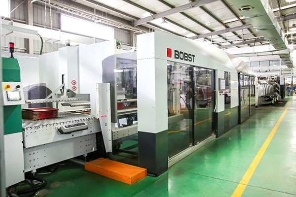 ![]() | 公司擁有從德國引進的先進瓦楞紙板生產流水線和從法國引進的五色柔印制箱聯動線,使生產自動化控制得到全面、有效的提高。德國BHS卓越之星五層瓦楞紙板生產線,設計最高時速300米/分,年產能可達1億平方米。該流水線采用了國際最先進的生產工藝,智能化程度極高,配備QDM,能夠記憶和調取訂單生產資料,確保穩定運行;同時瓦楞輥采用卡夾安裝以及周邊加熱方式,調換瓦楞輥最快15分鐘,大大提高換瓦楞效率。法國BOBST(博斯特)FFG 8.20全自動紙箱聯動線,生產速度可達24000個紙箱/小時,只需3人就能輕松操作機器,是國內首條該型號紙箱聯動生產線。整條線具有快速設置功能,只需1~2分鐘即可完成換單,能超高效生產規則開槽箱,具有SOC功能(前單完成后單自動到位)、五色印刷、自動印刷糾錯等功能。 |